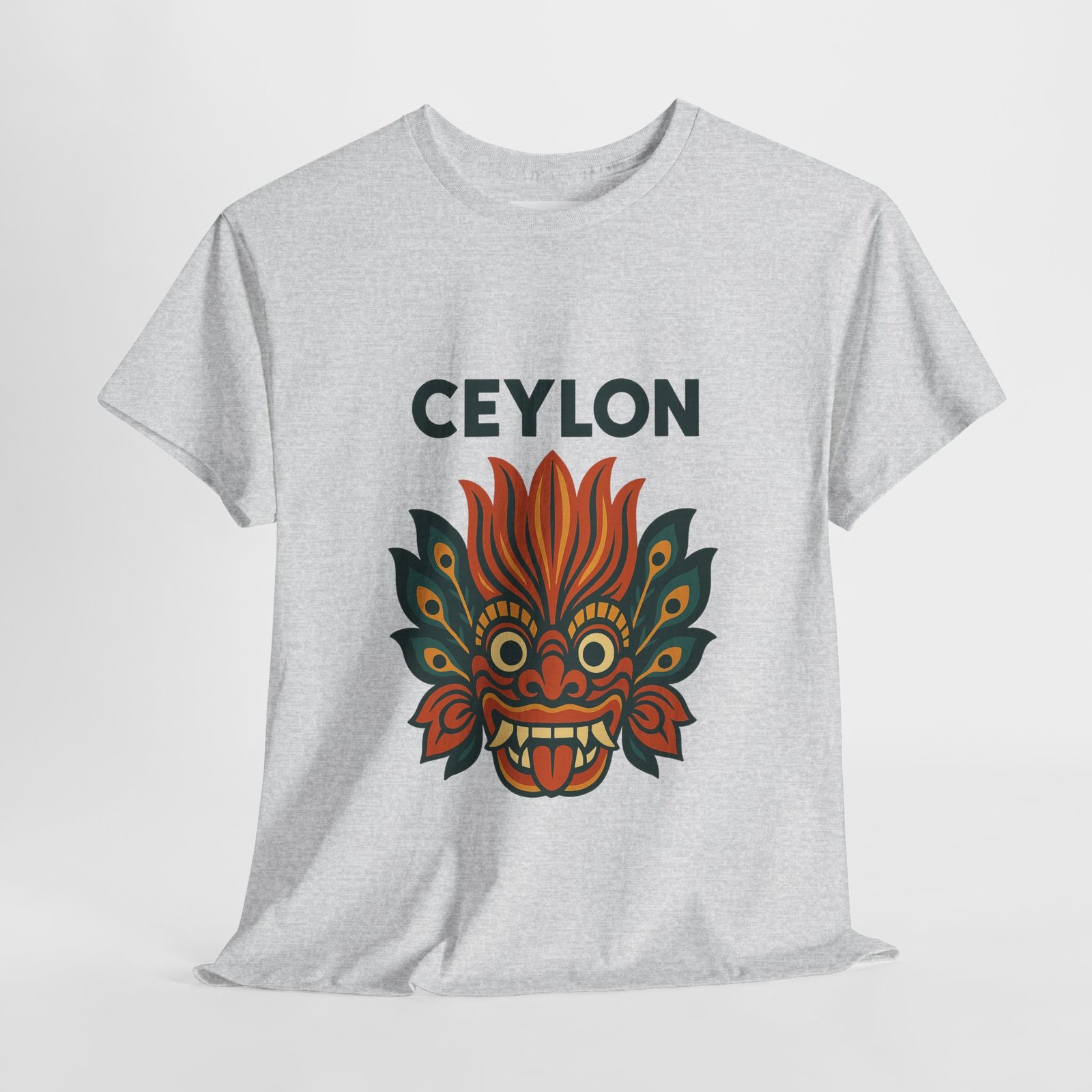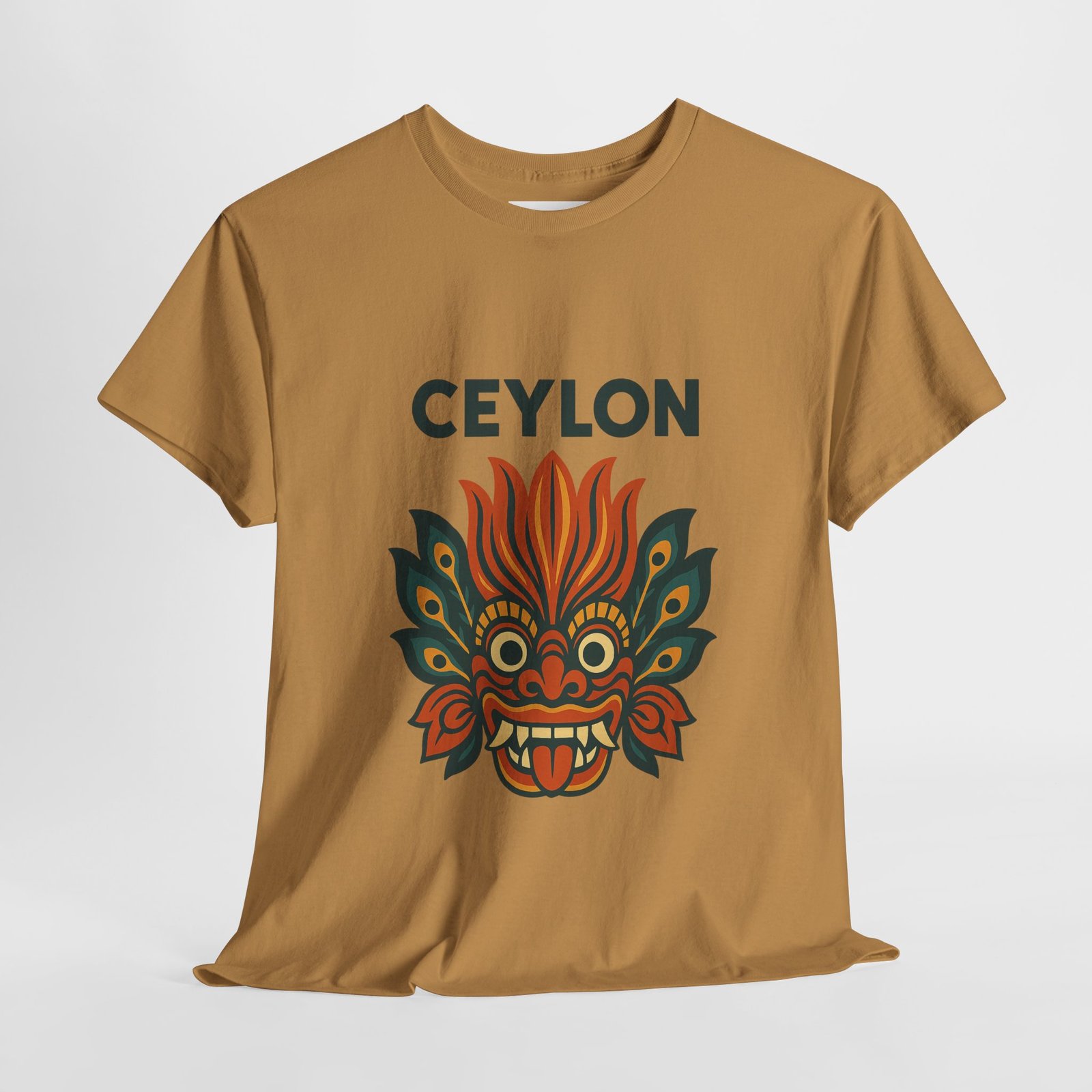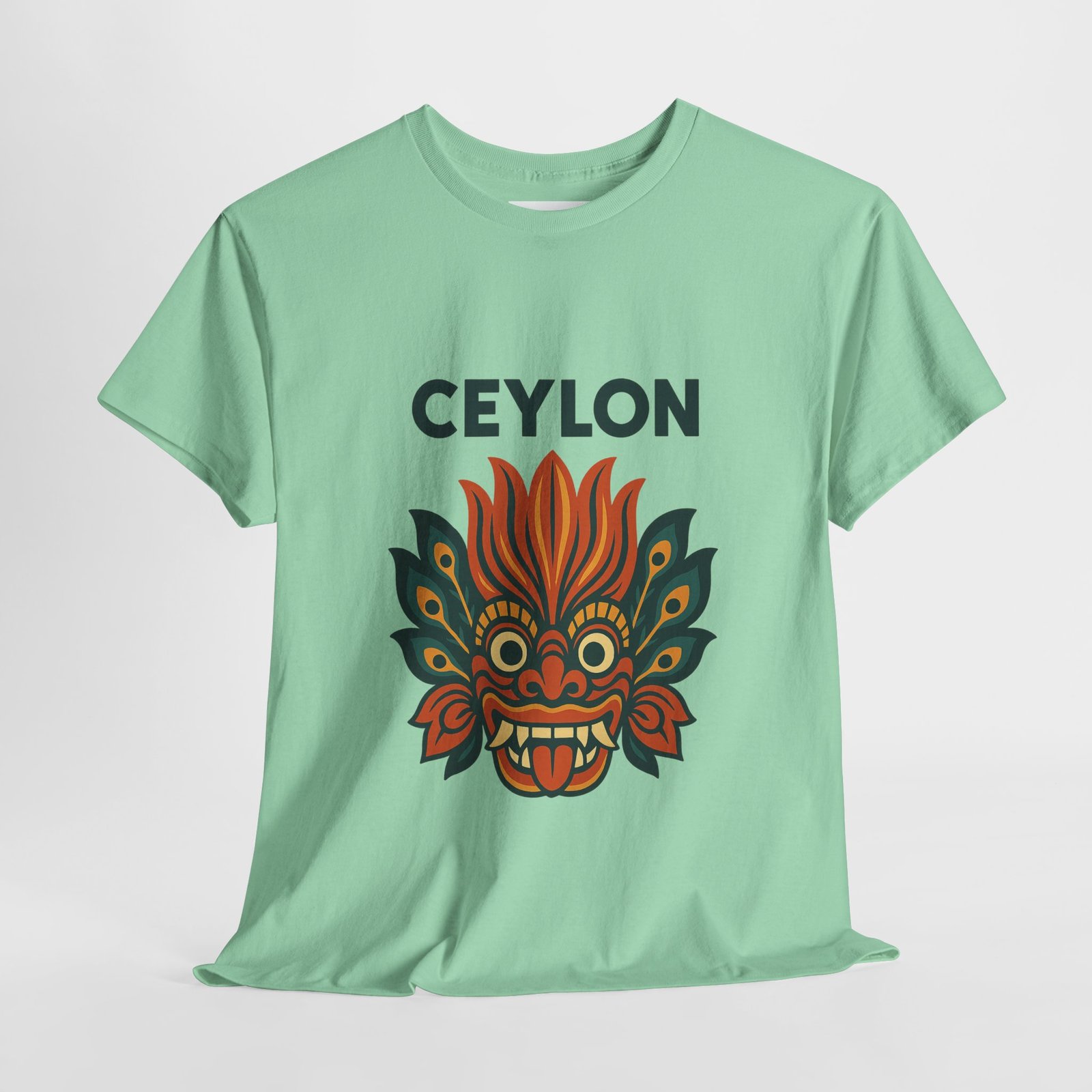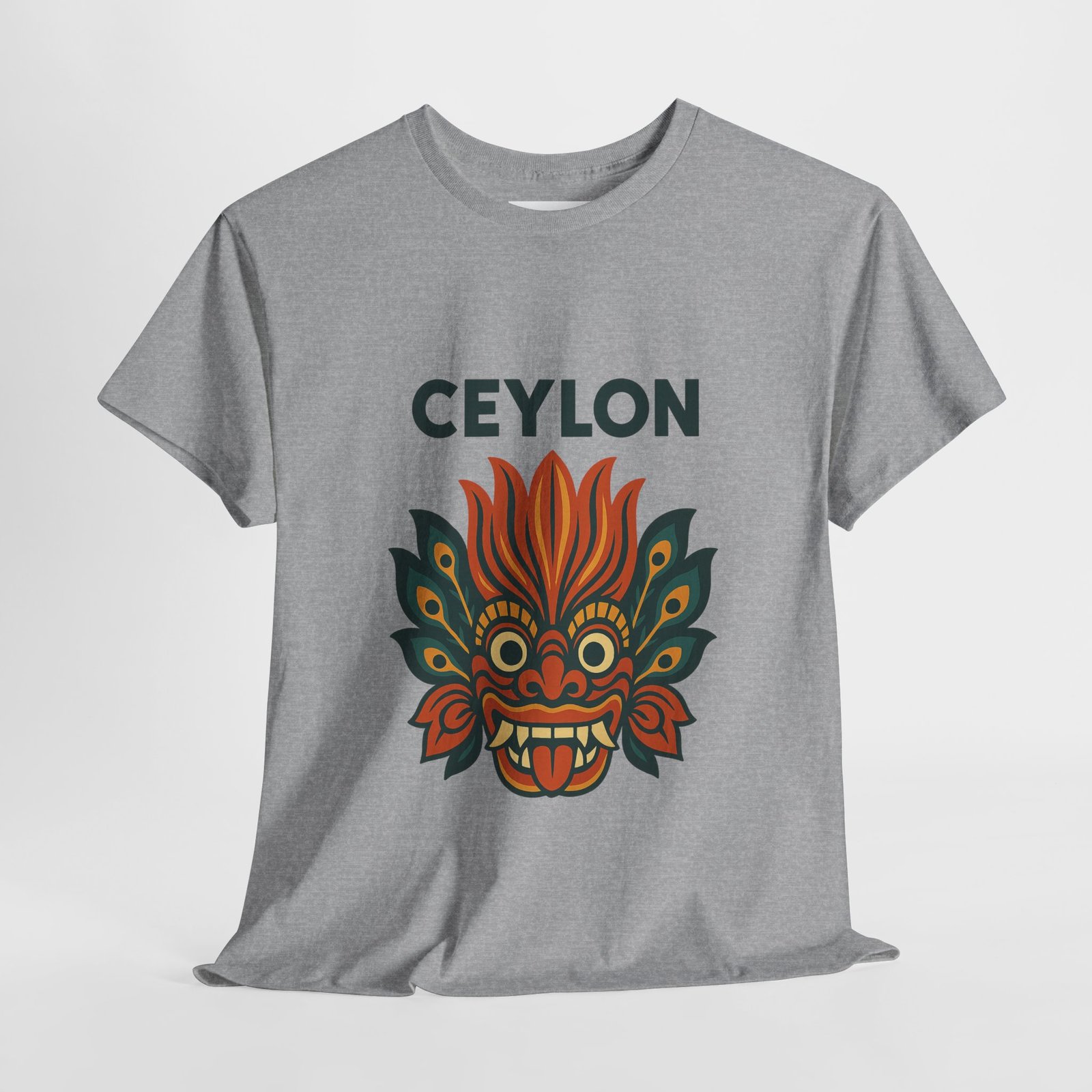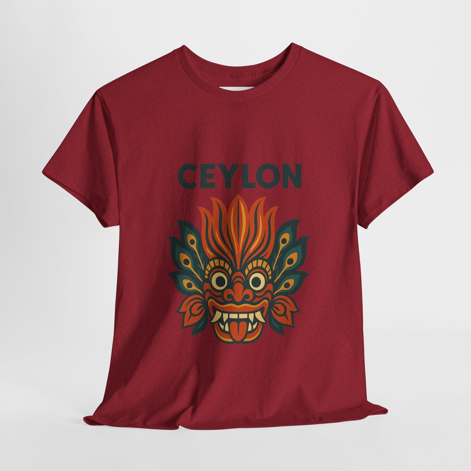 Statement print – Ultra-vivid DTG design inspired by traditional Sri Lankan devil-dance masks. Crack- and fade-resistant.