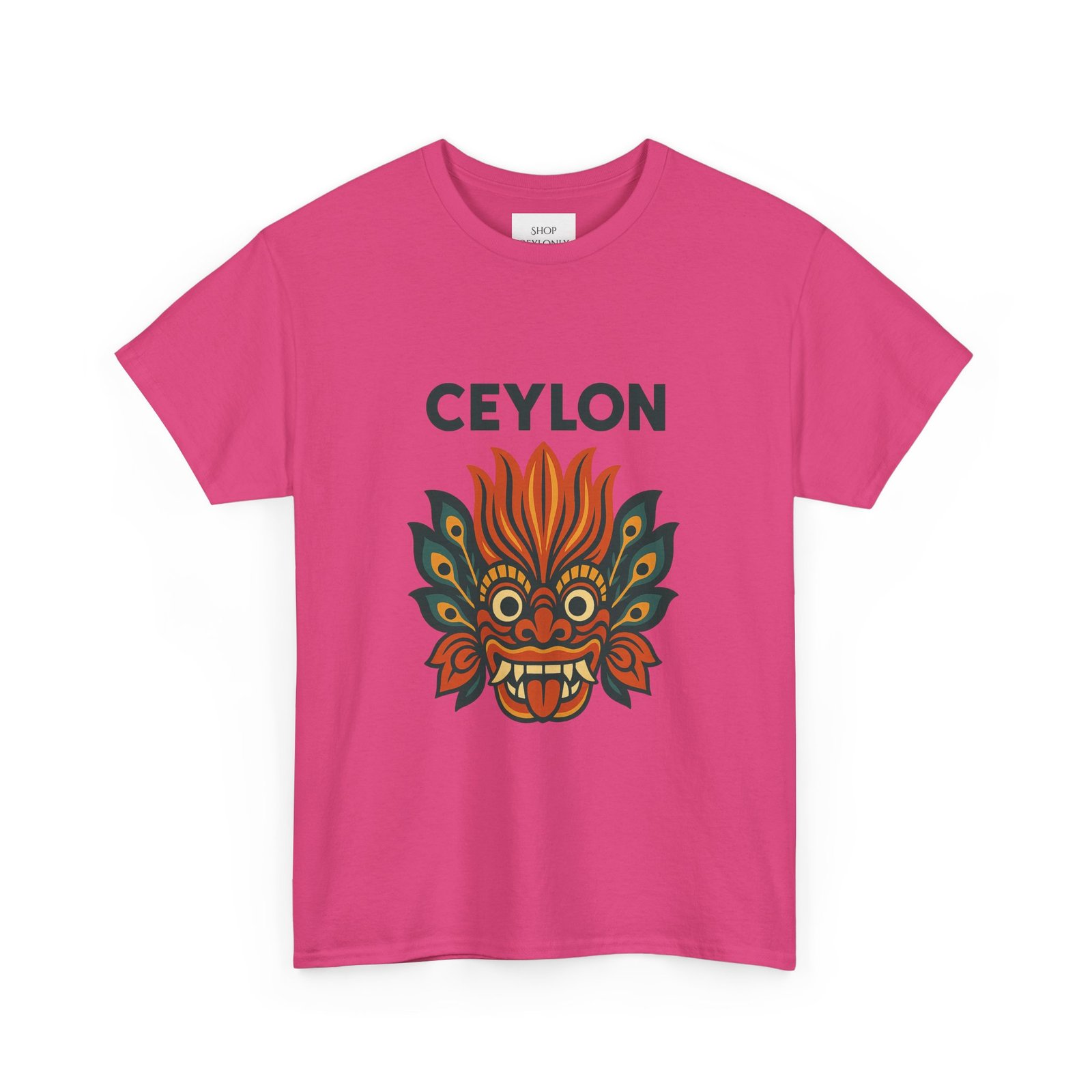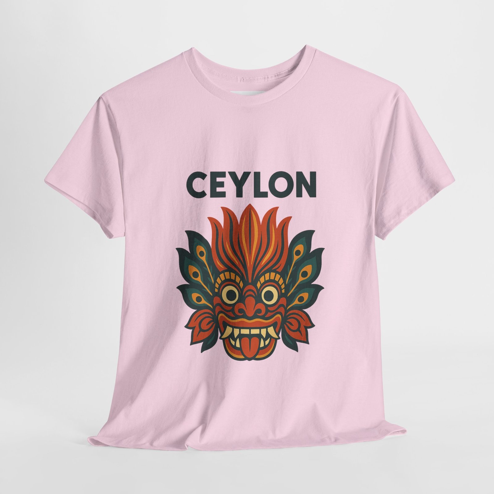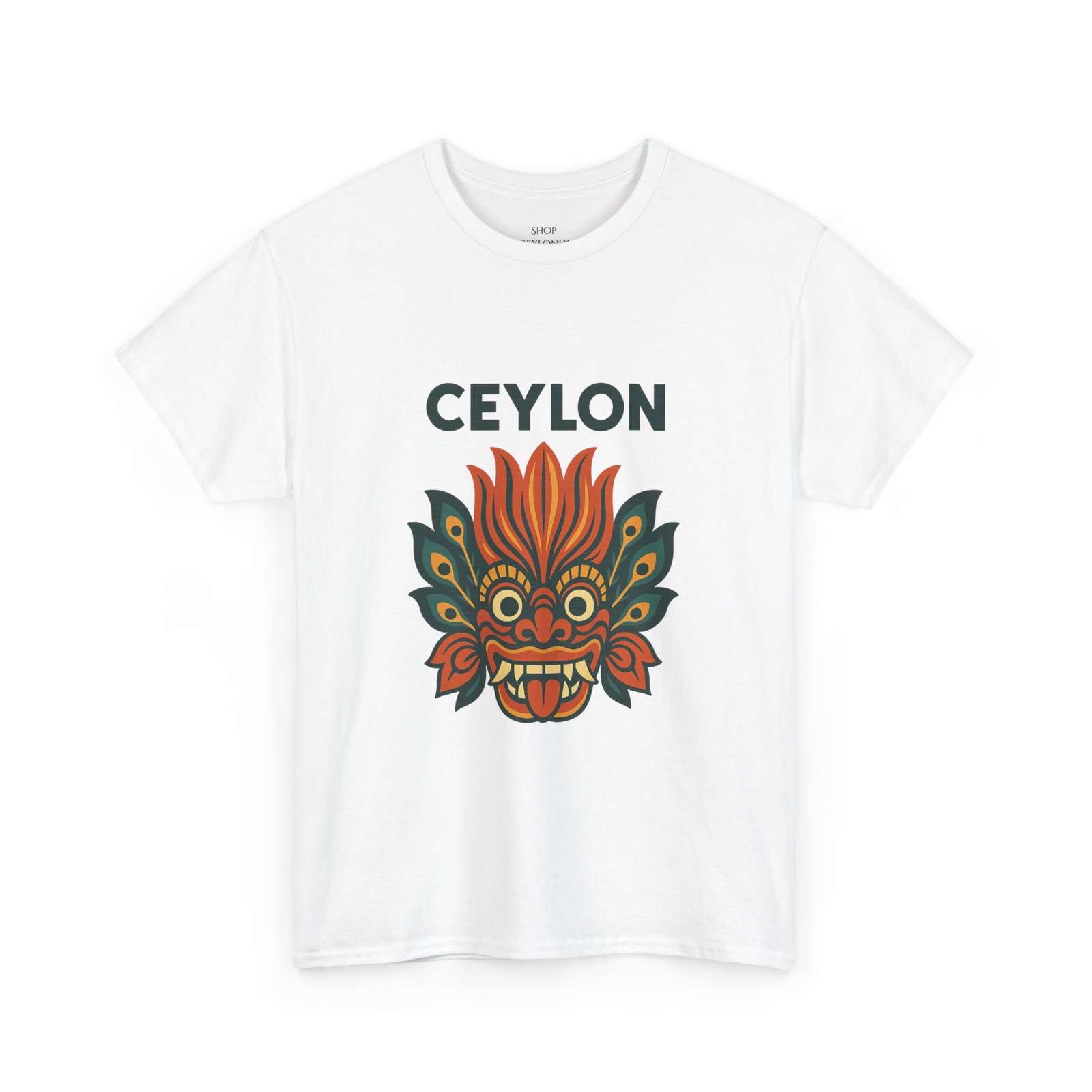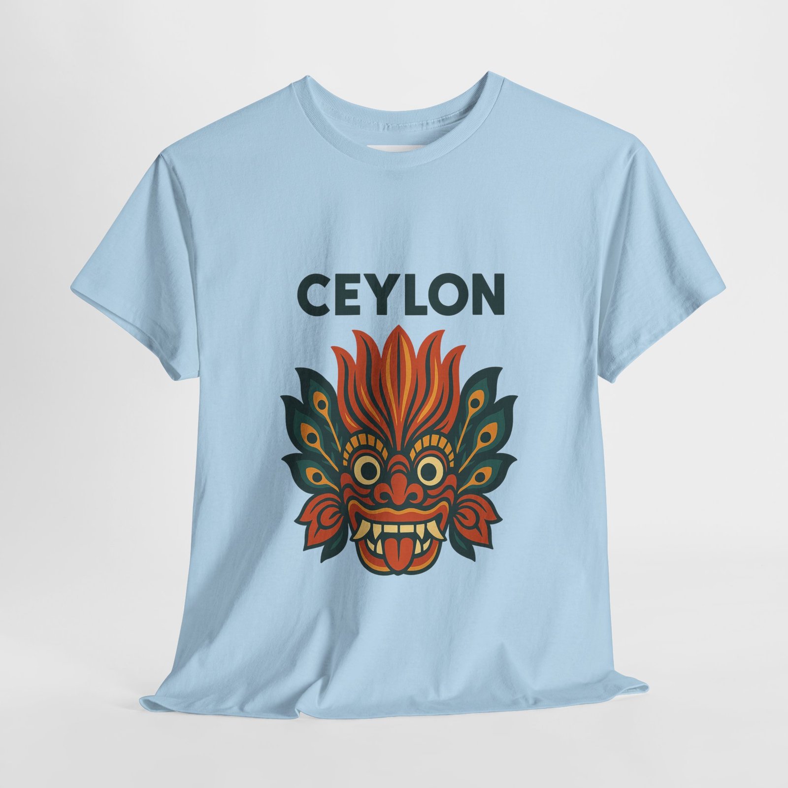Statement print – Ultra-vivid DTG design inspired by traditional Sri Lankan devil-dance masks. Crack- and fade-resistant.
