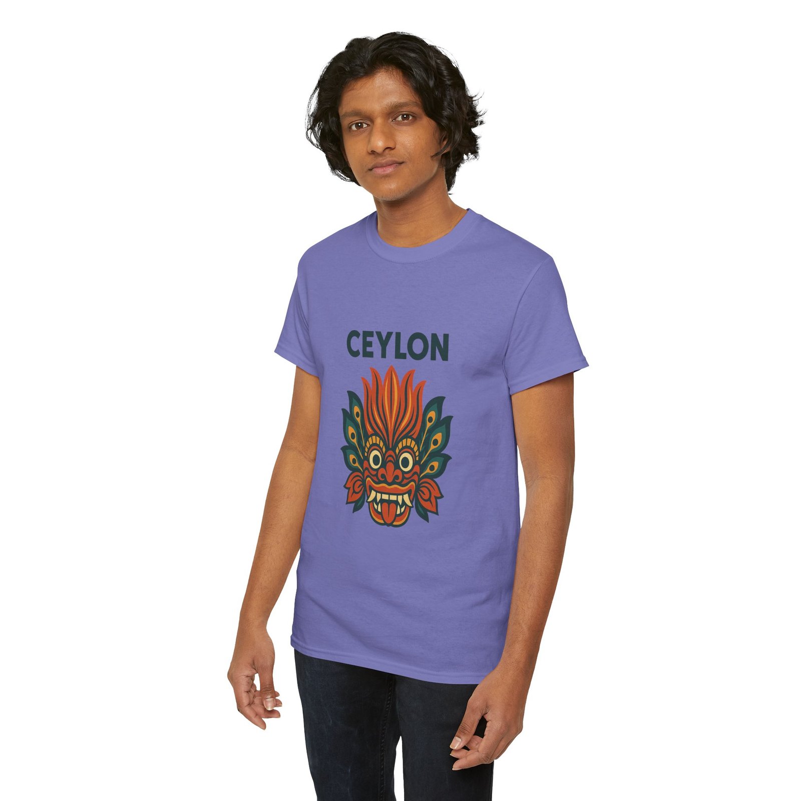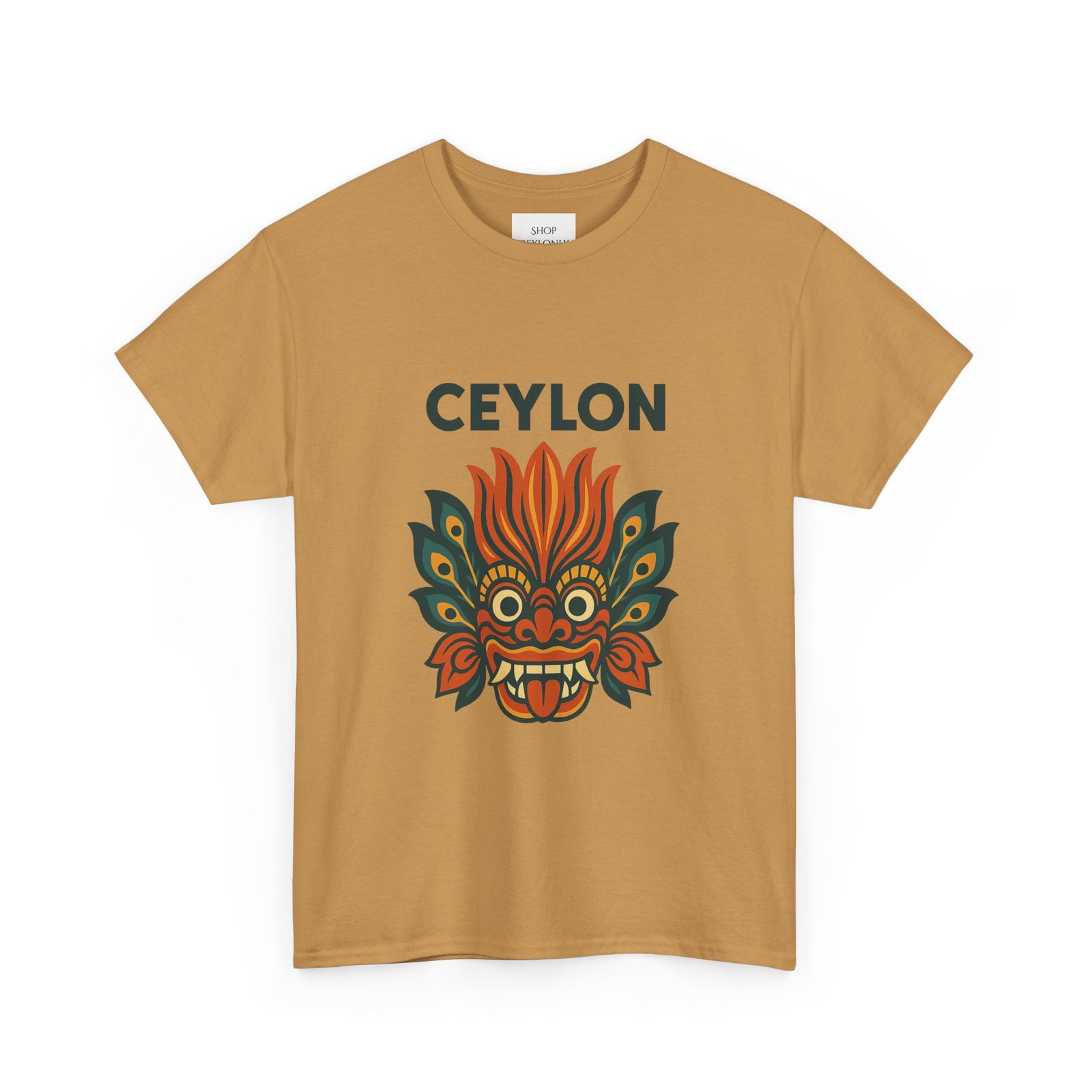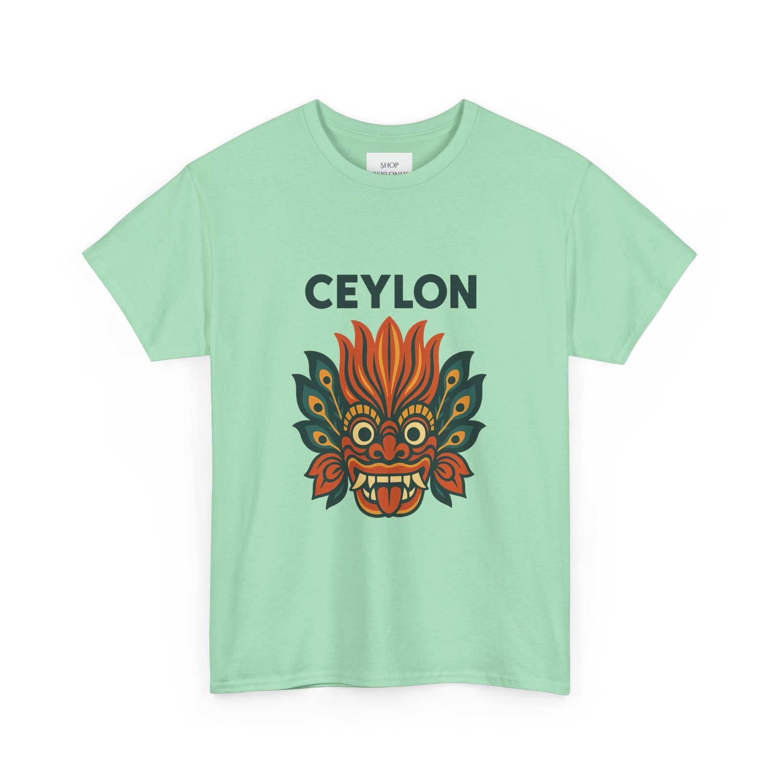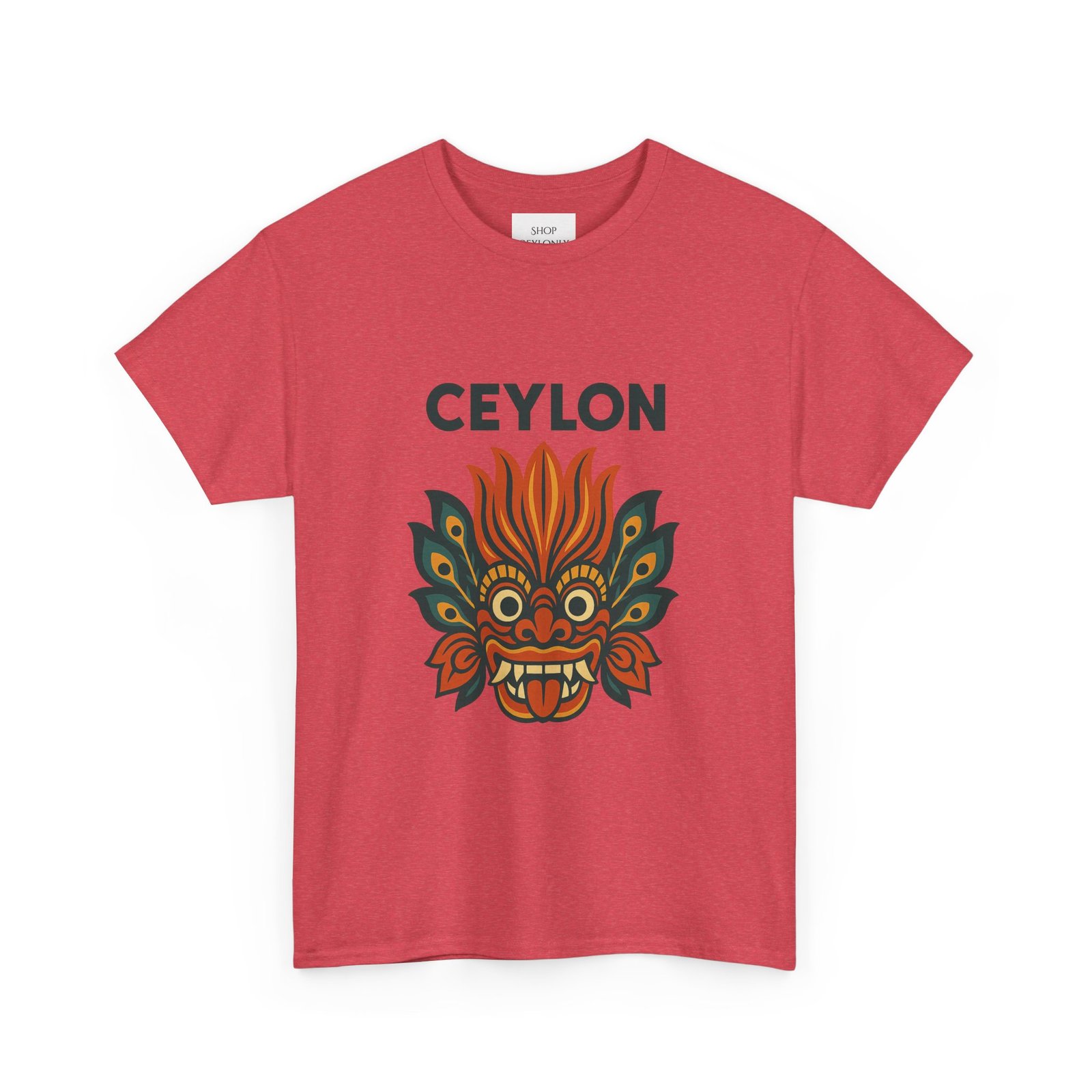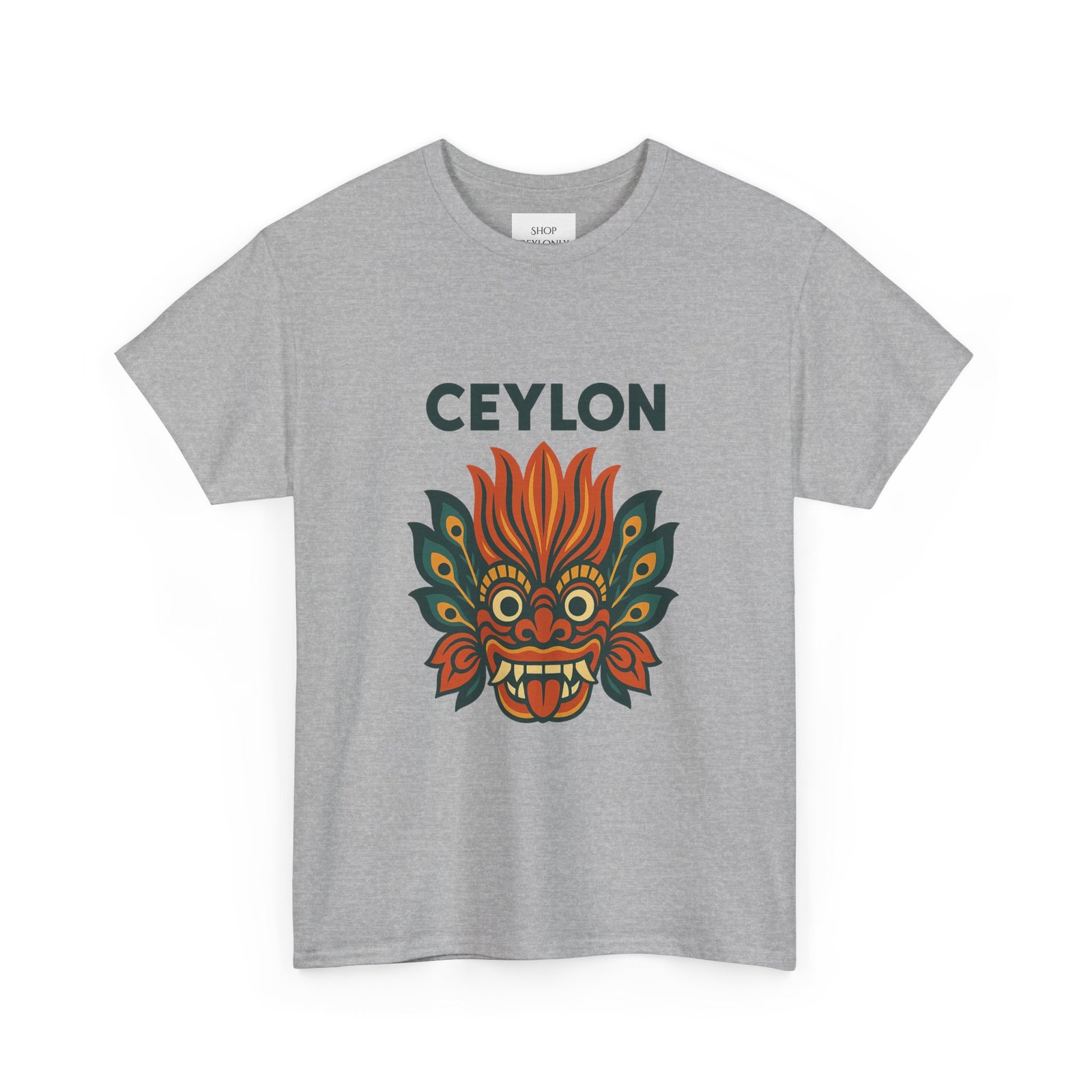 Statement print – Ultra-vivid DTG design inspired by traditional Sri Lankan devil-dance masks. Crack- and fade-resistant.