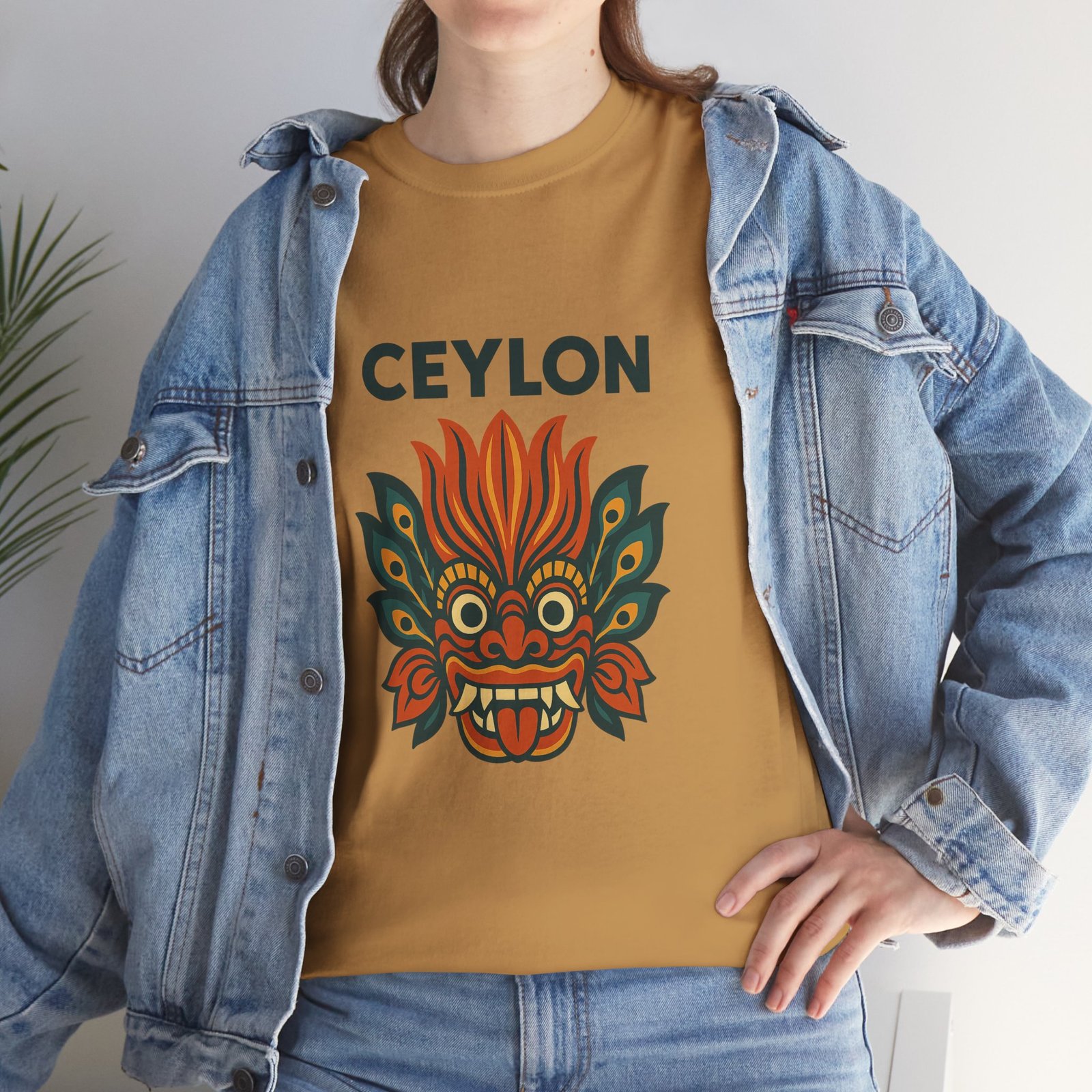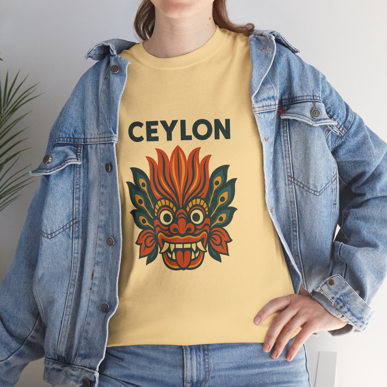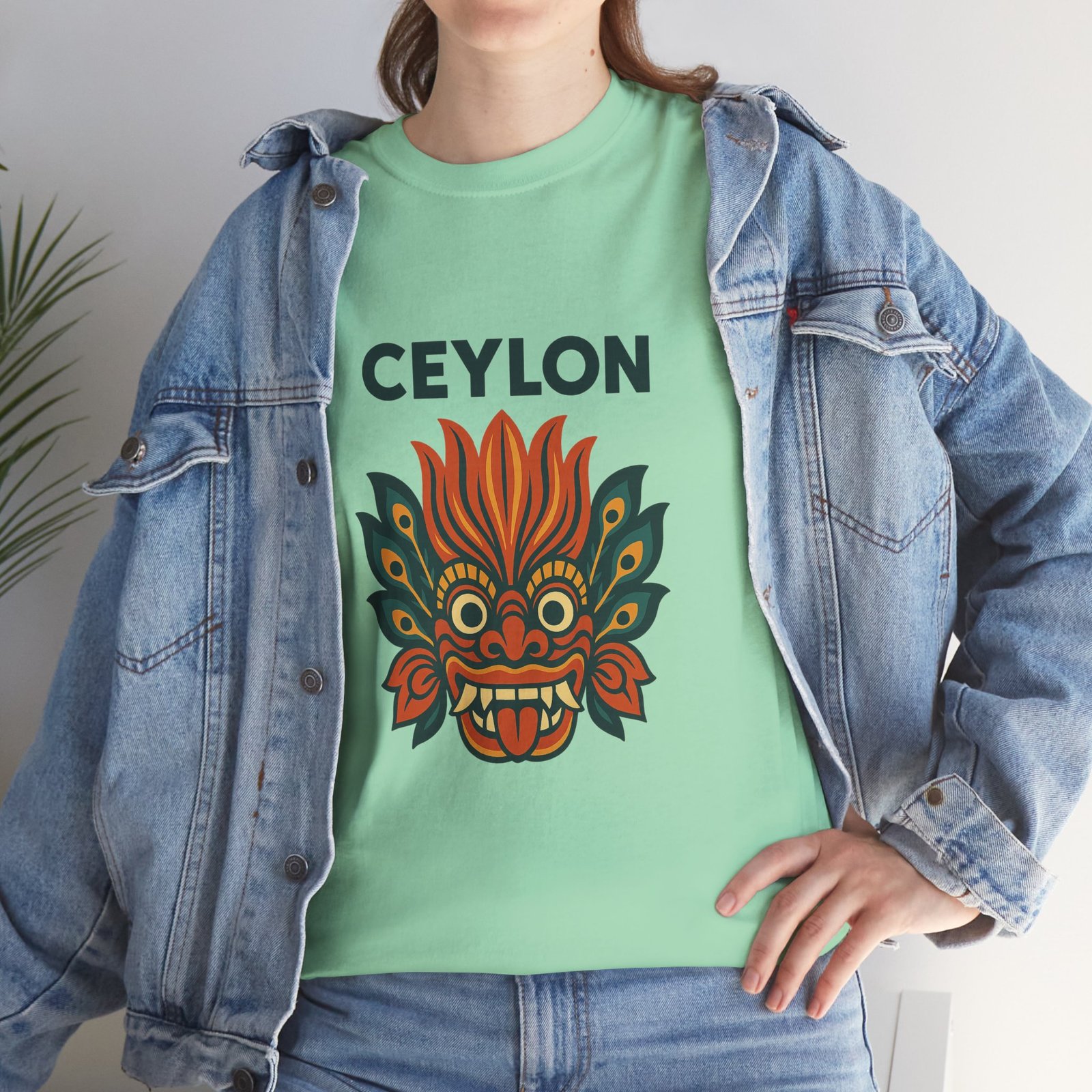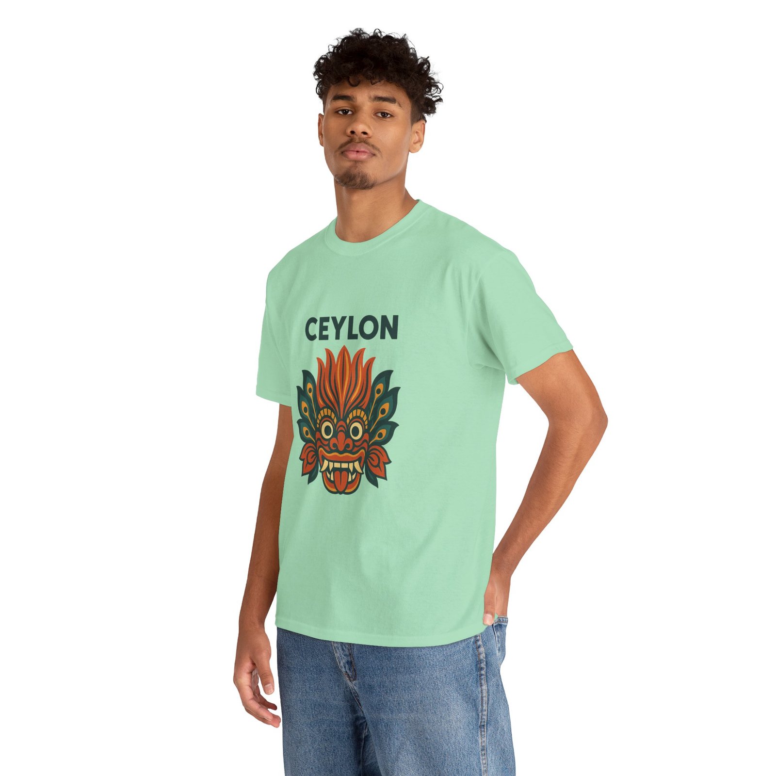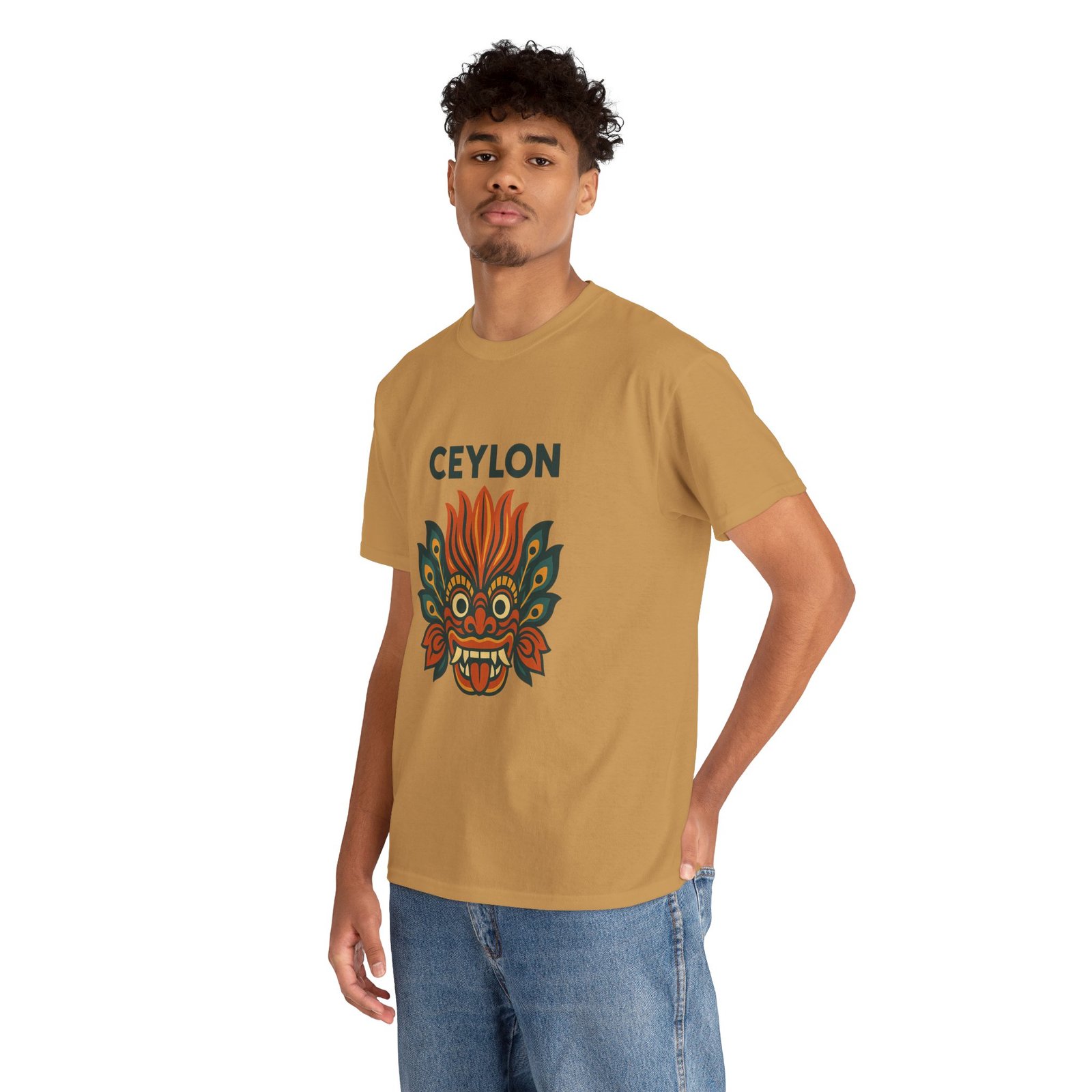 Statement print – Ultra-vivid DTG design inspired by traditional Sri Lankan devil-dance masks. Crack- and fade-resistant.