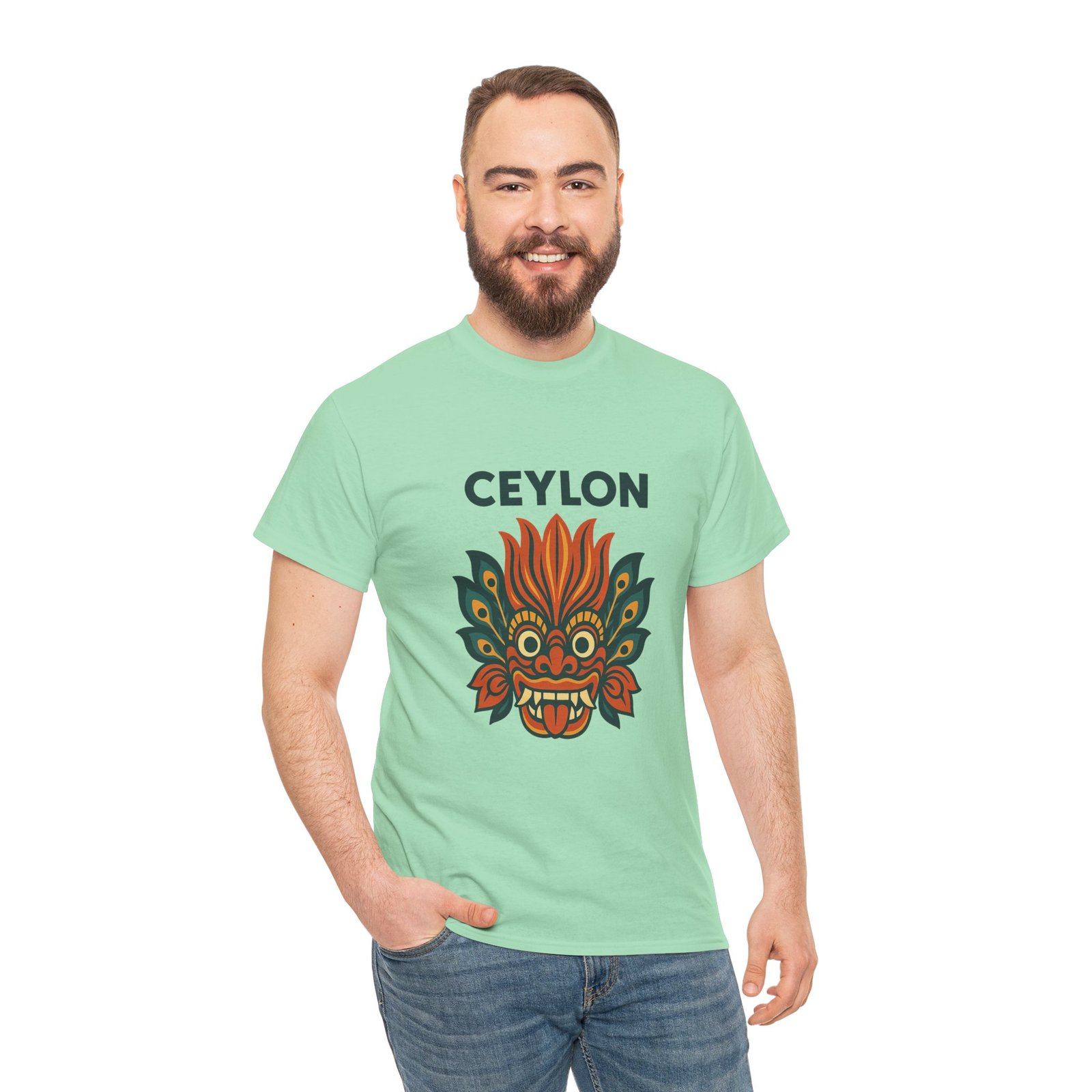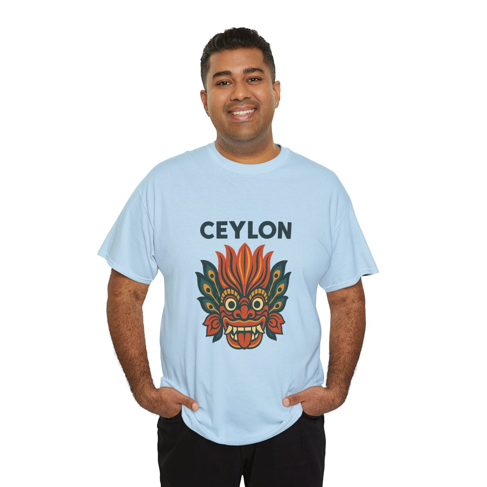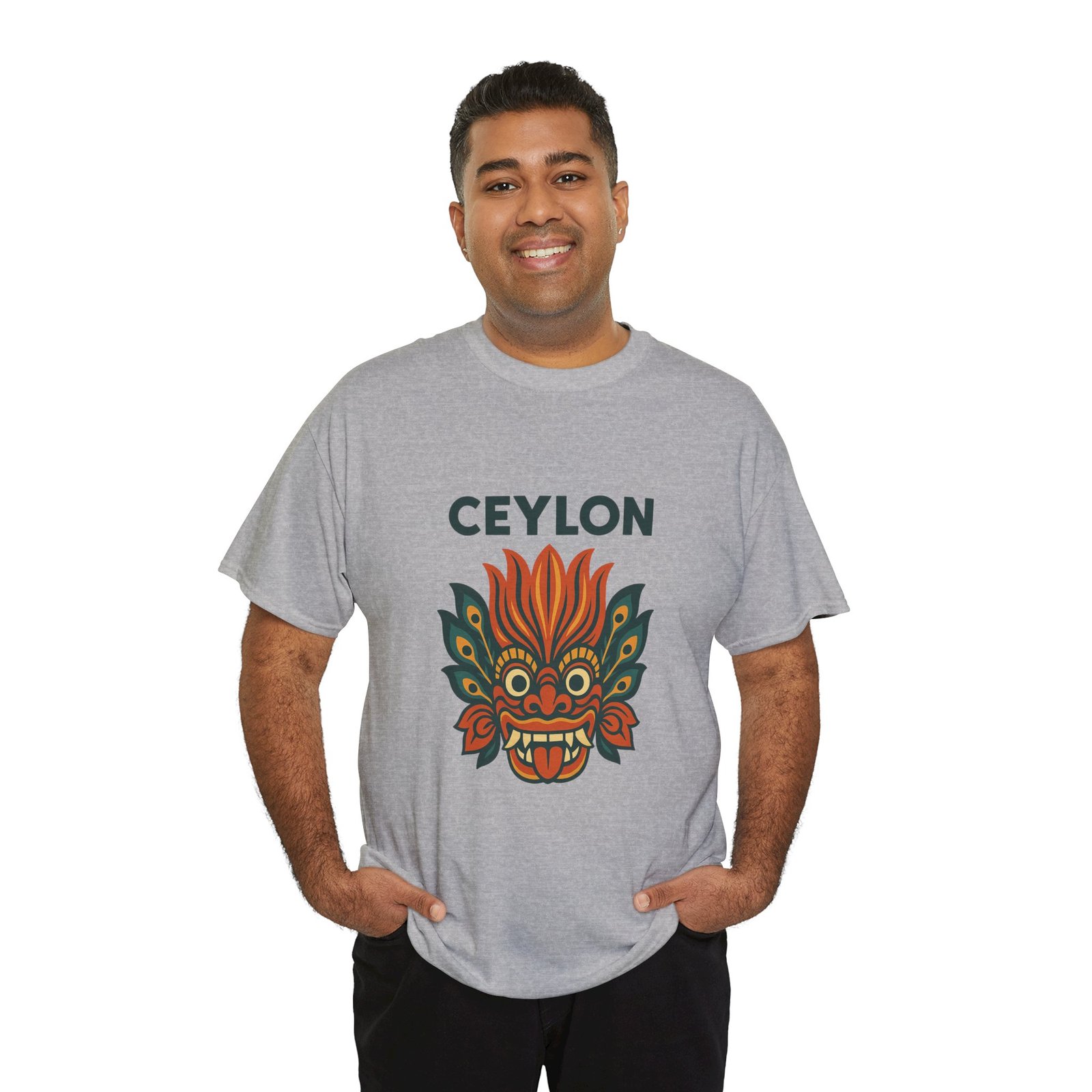 Celebrate Sri Lanka’s vibrant folklore with this bold Raksha mask graphic—equal parts art piece and everyday staple. Crafted from hefty 5.3 oz cotton, it feels reassuringly sturdy yet soft against the skin, ready for beach strolls, street markets, or laid-back weekends.